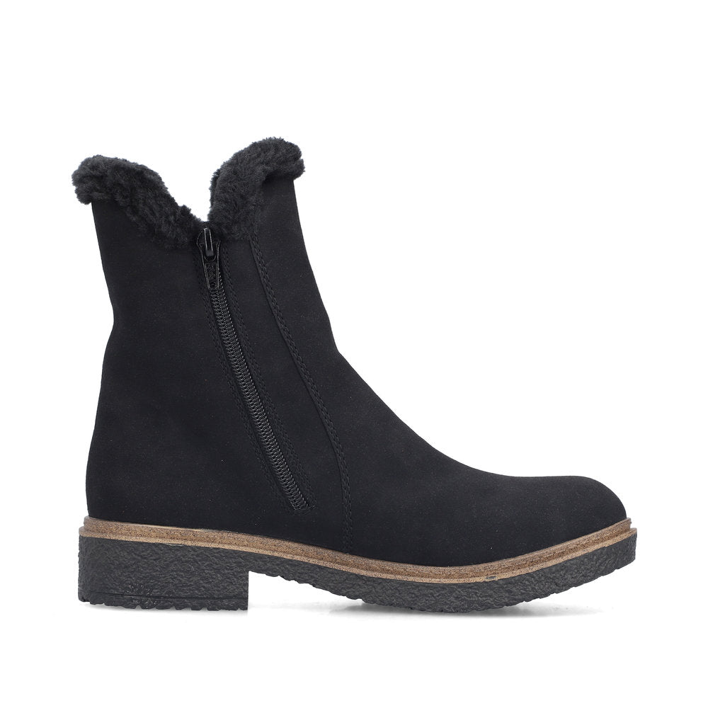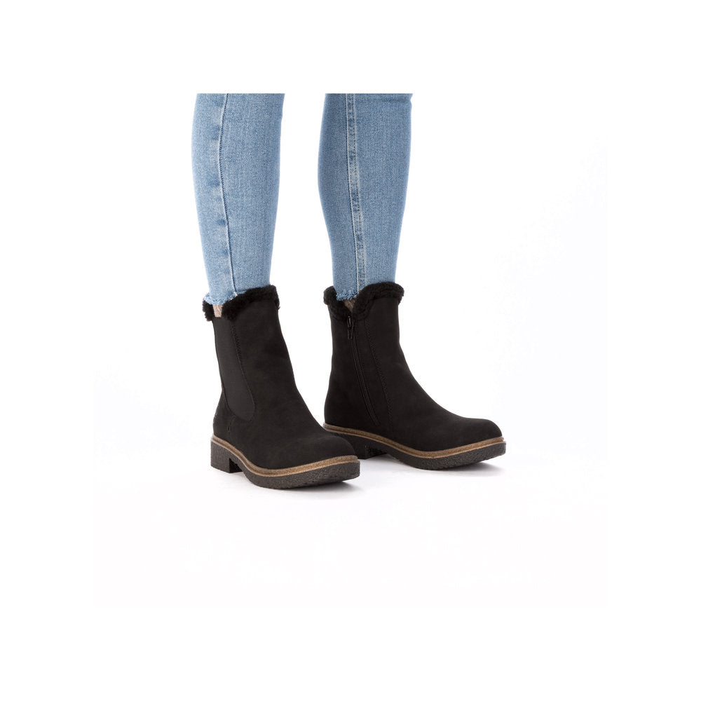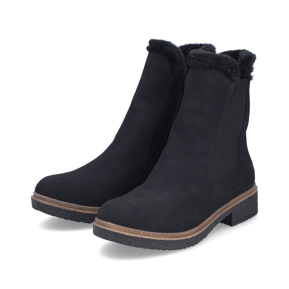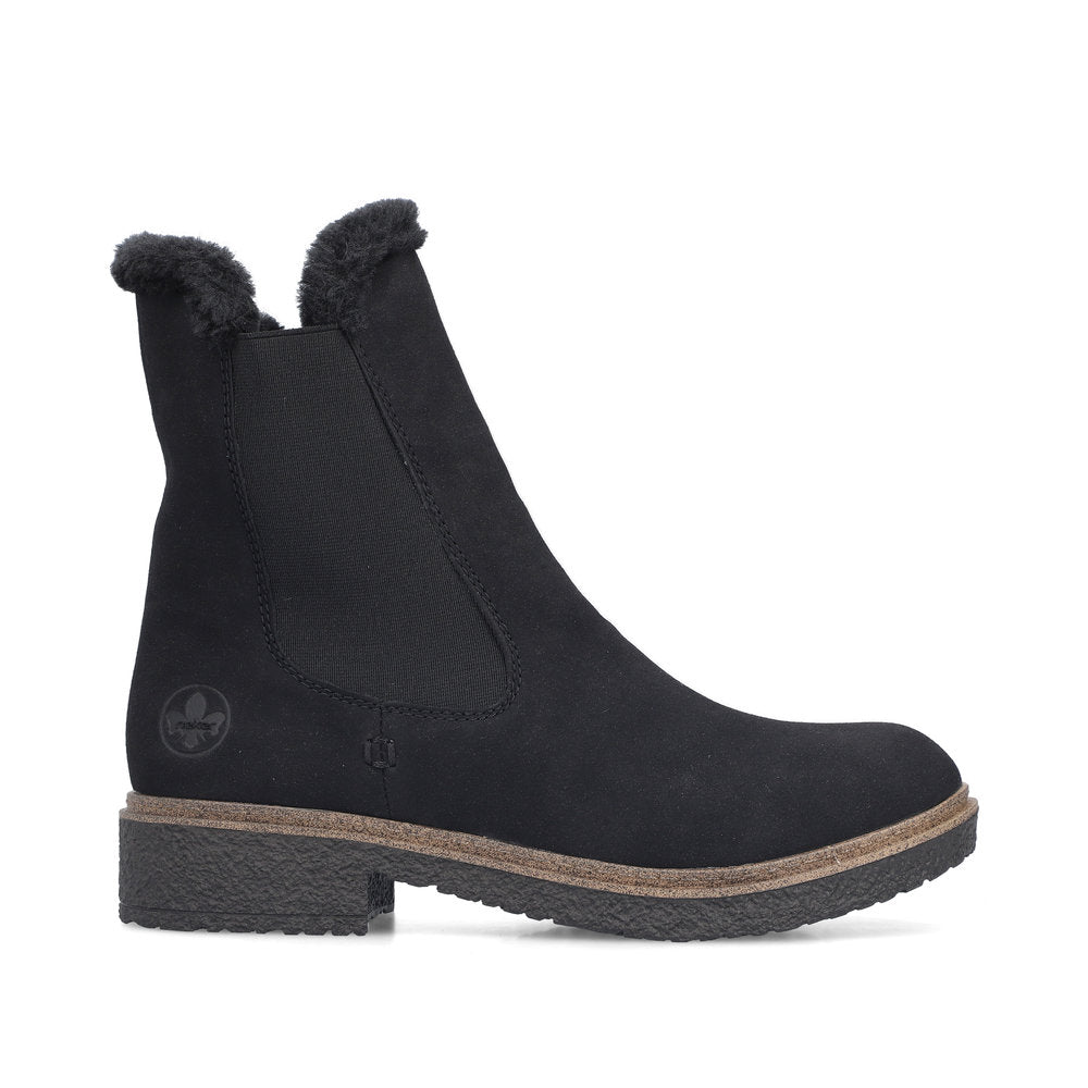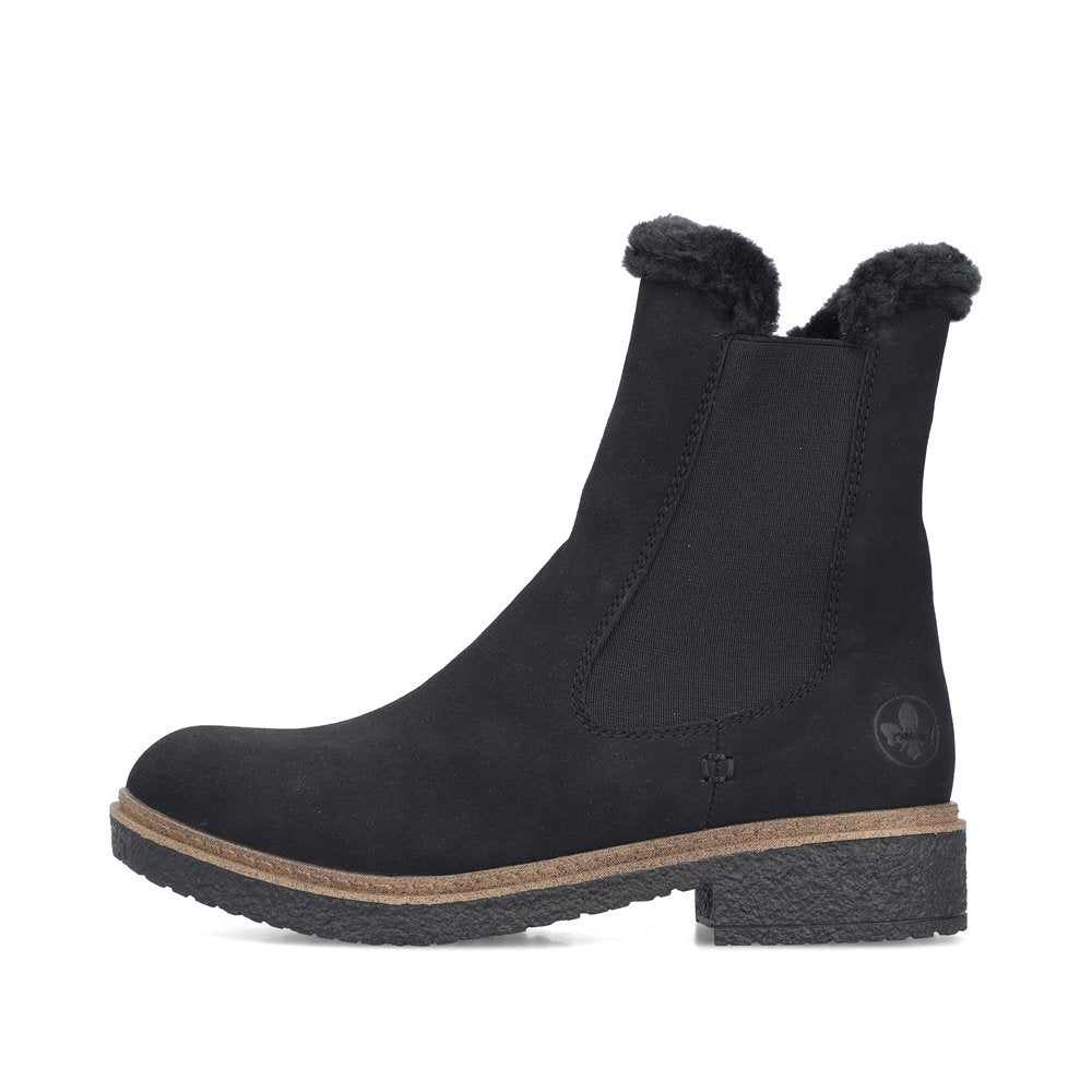 The cold is unable to harm you! These black Rieker Chelsea boots guarantee a heavenly feeling. In addition to the zipper, the model has an elastic insert, making it effortless to put on. The furry shaft edge adds a fashionable touch to the design. The shoe has a grippy sole that offers good traction for a secure step. In addition, the cover sole is extra soft. Soft warm lining makes these boots the perfect companions - no matter when, no matter where! So let's get going!