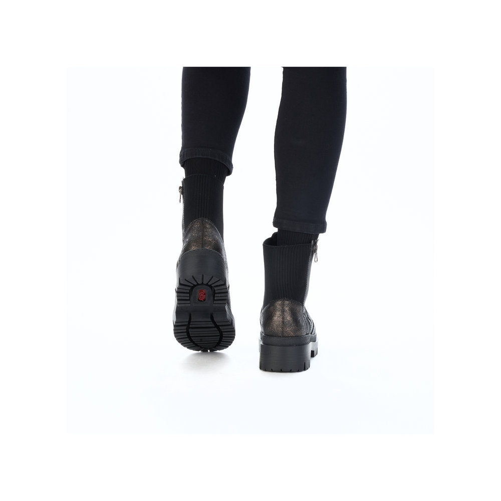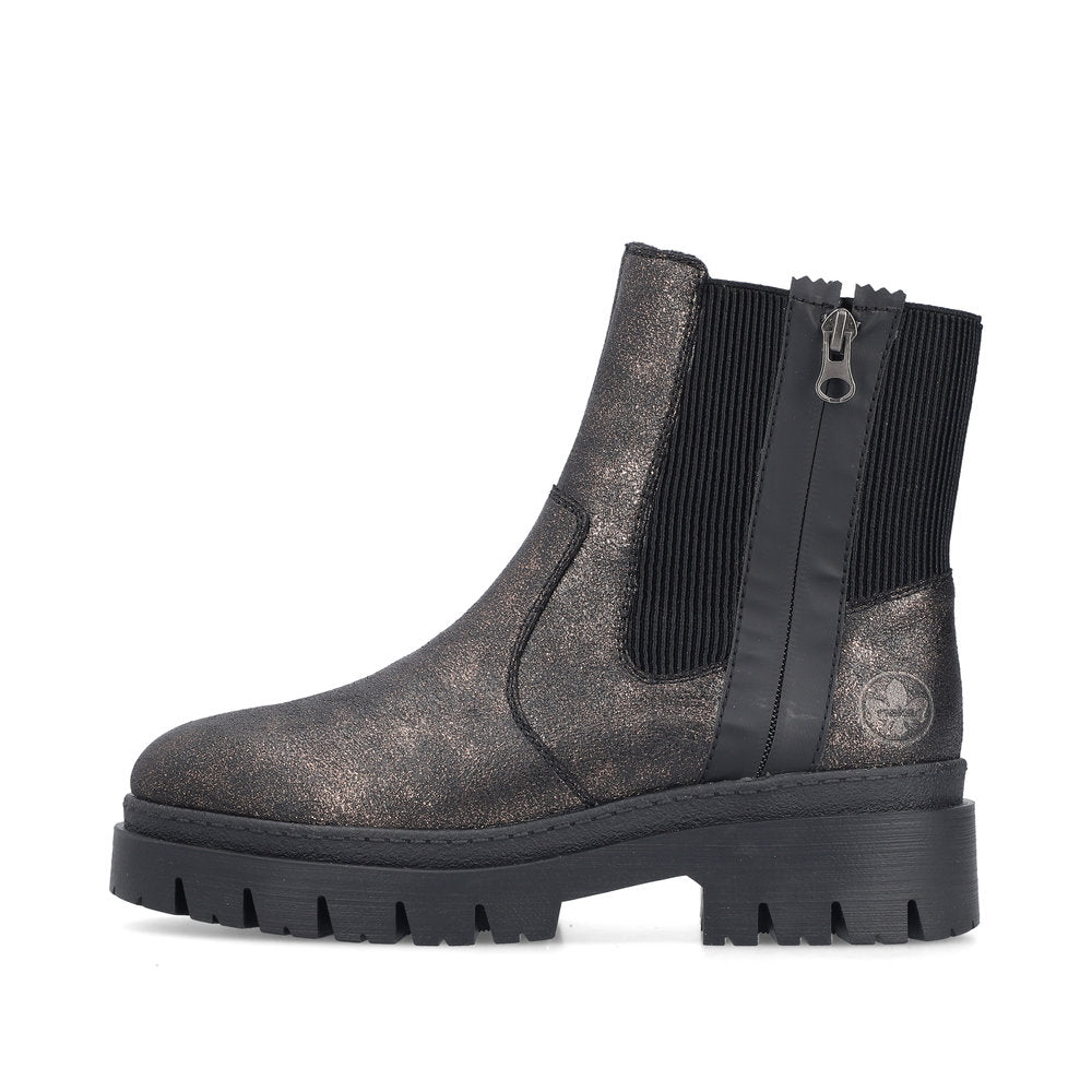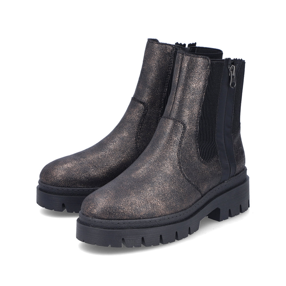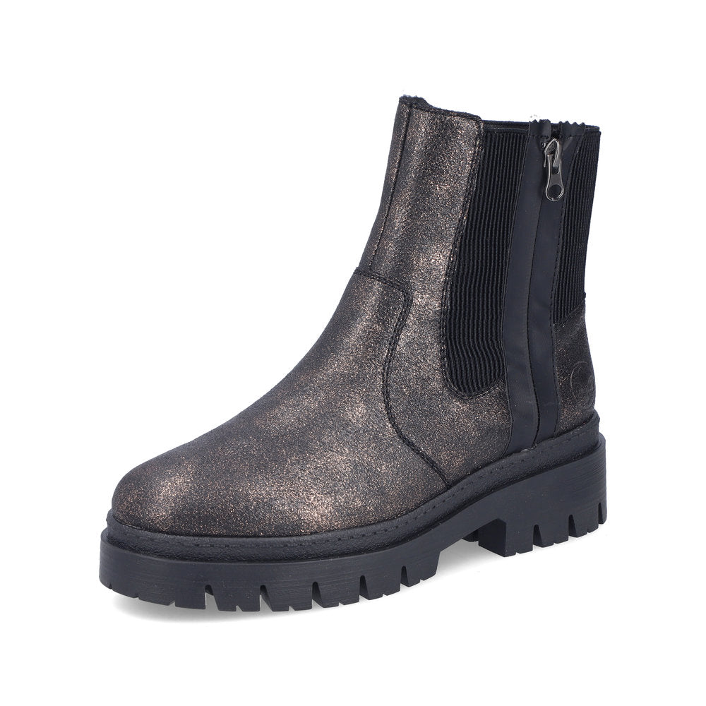 Never cold feet again! You'll be cool and casual on the move in these bronze Rieker Chelsea boots. In addition to the zipper, the model has an elastic insert, making it twice as easy to put it on. The grippy sole provides sure-footedness. Thanks to the padded and removable insole, optimal comfort is a given. With the soft warm lining, the shoes are perfectly equipped for cold temperatures. More is not possible!